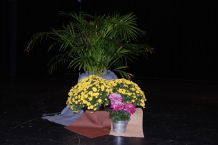 Schülern auf der Bühne. Gott hat uns so reich